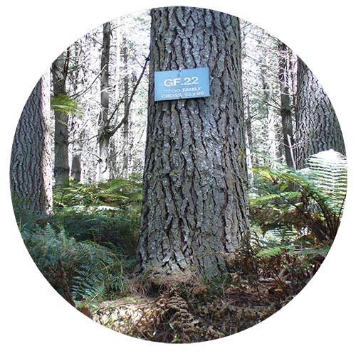 The SCS certifies the genetic ratings for each trait in the seedlot. These ratings are expressed as GF Plus™ values for each CP seedlot whether it contains one family (CP) cross or multiple CP crosses. The certificate is unique, in that each seedlot and each seedlot number is unique. Certifying seed certificates are also provided for OP seedlots. OP seedlots do not have GF Plus™ values because the genetic identity of only one of the parents (the tree producing the cones) in each of the many crosses that contribute to an OP seedlot is known.